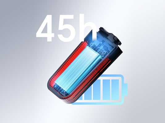 Met een batterijduur tot 45 uur is dit lampje gemaakt voor lange dagen in het zadel. Ideaal voor pendelaars die niet elke dag willen opladen.
